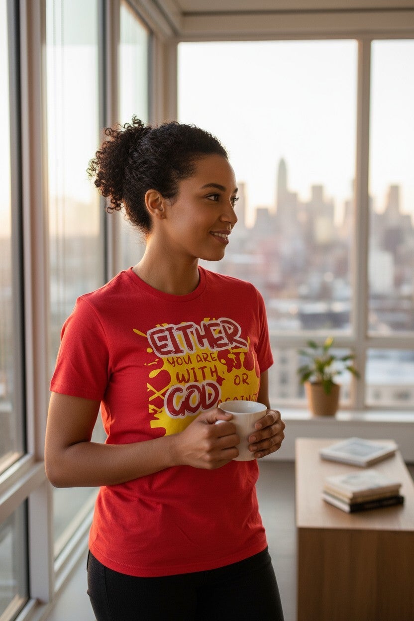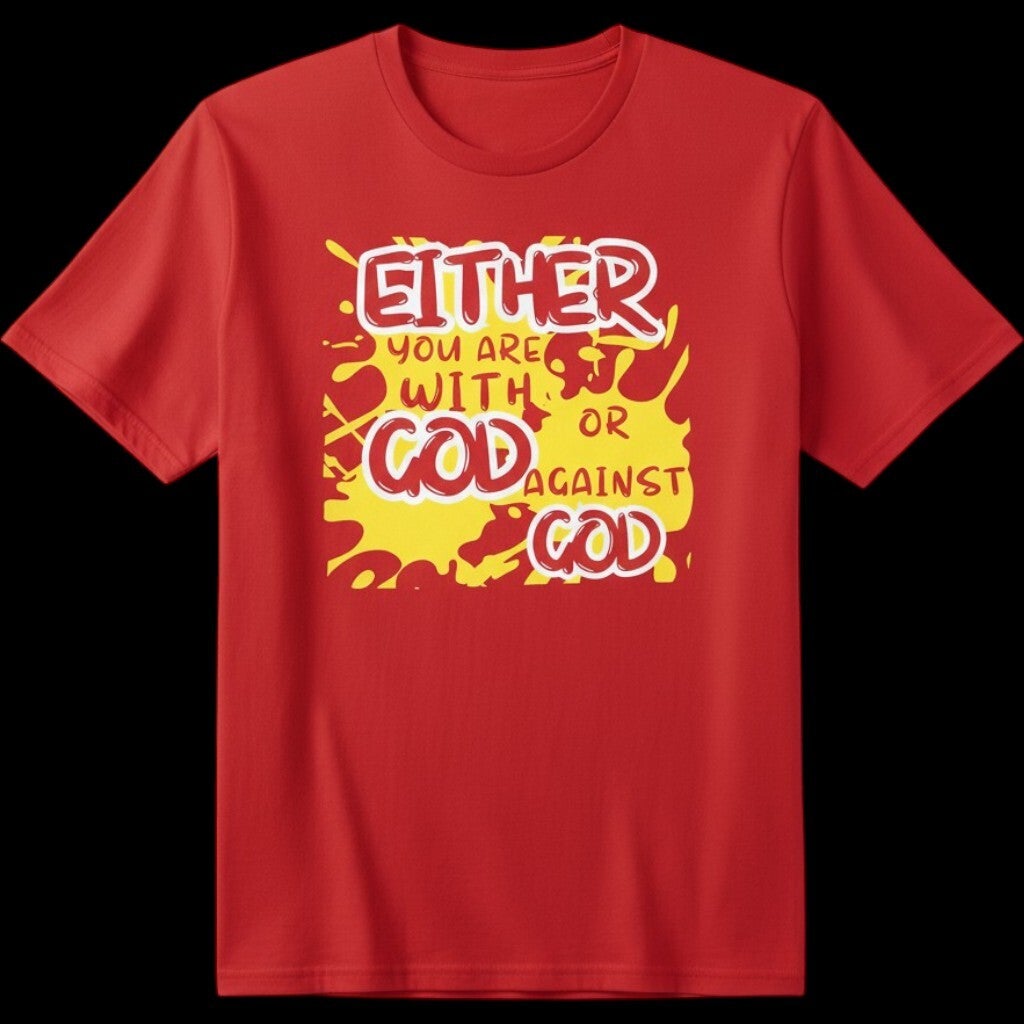 FAITH-BASED CHRISTIAN TEE FOR MEN AND WOMEN/EITHER YOU ARE WITH GOD OR AGAINST GOD