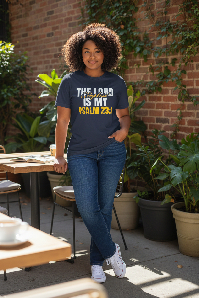The Lord Is My Shepherd — Psalm 23:1 This T‑shirt is created to be more than clothing — it’s a declaration of trust, peace, and confidence in God’s guidance. Inspired by the timeless words of Psalm 23:1, this design reminds you that no matter where life leads, the Lord is your Shepherd, your protector, and your provider. Wear it as a daily reminder of His presence and as a quiet testimony to everyone around you.